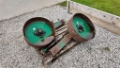 24" diameter x 8" wide.Fitted with good bearings and wheel scrapers.