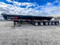 6-axle side dump semi-trailer engineered for heavy payload control. Air-ride suspension with steerable lift axles on #1, #2 & #6; #3–#5 fixed for tracking and stability. 53' overall with a 40' 3/16" HARDOX 500TUF steel tub for abrasion resistance. Aluminum single wheels. Aero Sidekick 2 electric tarp with safety switch. Two-speed landing gear, rock guard, bolt-on push block, and fender belting for jobsite protection. Equipped with drum brakes.