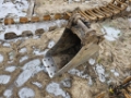 Mini excavator in working condition.
