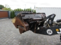 Bressel and Lade side tipping bucket for wheel loaders allows lateral discharge of the bucket. The load can also be precisely filled as a narrow stream into, for example, salt spreaders or seed drills. Suitable for free-flowing bulk materials up to 1,800 kg/m³, high wear-resistant cutting edge, robust bucket substructure, with 1 hydraulic cylinder, tipping direction to the right in the direction of travel (90°), width: 1,820 mm, depth: 620 mm, height (from cutting edge to top edge): 900 mm.