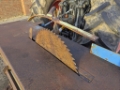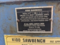 A Kidd sawbench, PTO driven, 3-point linkage, foot clutch, blade guard, width guide.