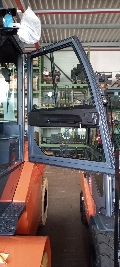 Minihebel, Grammer Komfortsitz MSG 75/521, hinterer Haltegriff mit Hupe,  Stahlkabine schingend gelagert (Bauhöhe 2835 mm), Sonnenblende, Glasdach mit Scheibenwischer und Waschanlage (Bauhöhe + 50 mm), Fahrerschutzdachabdeckung Metallgitter