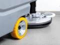 New polyurethane squeegee rubbers resistant to oil, grease, and petroleum products. The built-in battery charger and wheel drive simplify daily operation.