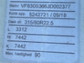 Rear axle 2: Tyre size: 315X80X22.5; Double wheels; Tyre profile left inner: 40%; Tyre profile left outer: 40%; Tyre profile right outer: 40%; Tyre profile right outer: 40%; Reduction: hub reduction