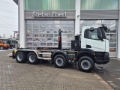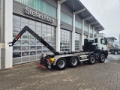 Aufbau: HIAB ULT26S59, für Container von 5,25m bis 6,75m, Hakenhöhe: 1570mm, hydr. Querverriegelung, elektrische Fensterheber, Klimaanlage, Zentralverriegelung, Anzahl Sitze 2, Luftsitz, Sitzheizung, Touchscreen, Bluetooth, USB, Radio, Navigation, Freisprecheinrichtung, Automatikgetriebe, Tempomat, Motorbremse, Berganfahrassistent, ABS/ESP/ASR, Sonnenblende, Außenspiegel beheizbar, Außenspiegel elektrisch, Differenzialsperre, Nebenantrieb, Halogenscheinwerfer, Nebelscheinwerfer, Zusatzscheinwerfer Fahrzeugheck, Tagfahrlicht, Luftfederung Hinterachse, Rangierkupplung, Kupplungsköpfe rot/gelb, zulässiges Gesamtgewicht: 32.000kg, Leergewicht: 13.417kg, Nutzlast: 18.583kg, Reifenprofil: 1. Achse 10 mm 2. Achse 11-13 mm 3. Achse 15-18 mm 4. Achse 14-16 mm