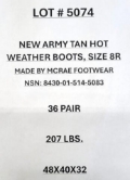 (36) Unused Army Tan Hot Weather Boots Size 8R